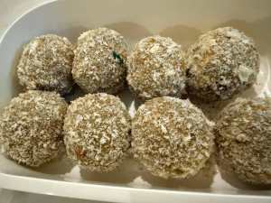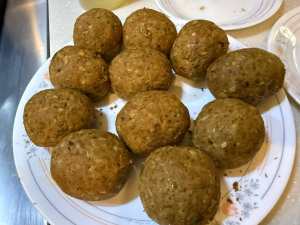 - Coat the balls with all purpose flour and then coat with 1 large whipped egg and then with bread crumbs.
