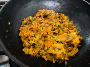 Boil 2 medium potato and 1 small carrot in water with salt to taste. 10-15mins. Drain water. Mash boiled potato and carrot. Keep aside.